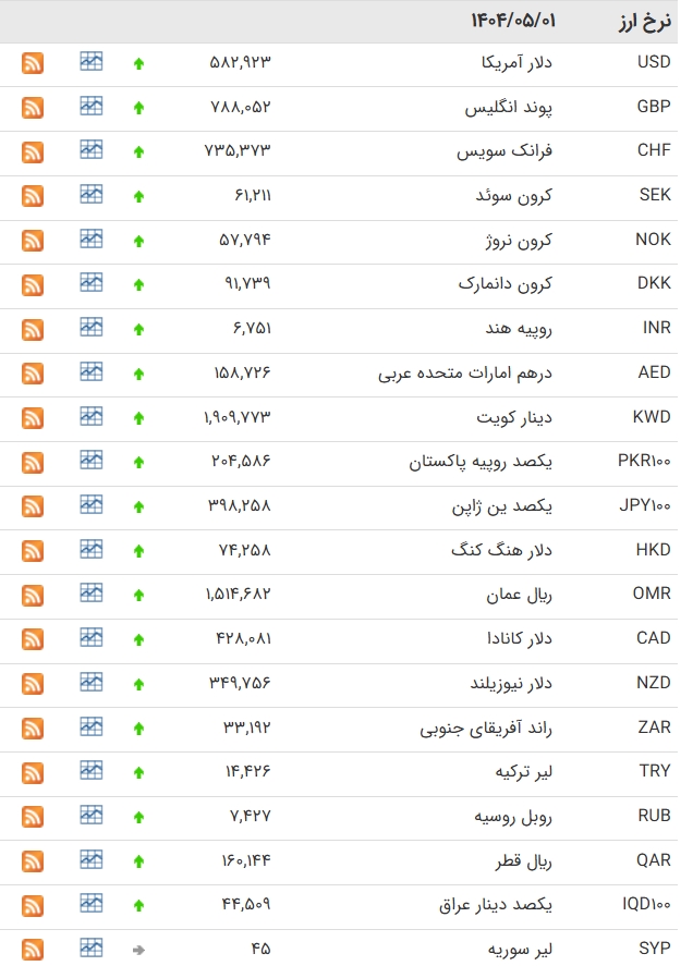 از سوی دیگر اسکناس درهم امارات نیز با افزایش به 19 هزار و 541 تومان ارزشگذاری شده و نرخ حواله درهم نیز 18 هزار و 972 تومان است.